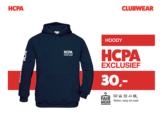Na de lancering van het officiële wedstrijdtenue (seizoen 2016-17) verzorgde ik een clubwear-set bestaande uit een softshell jas, trainingspak en T-shirt met specifieke plaatsing van het nieuwe HCPA-logo. Op zich een beperkte bijdrage van mezelf maar wel met grote impact.